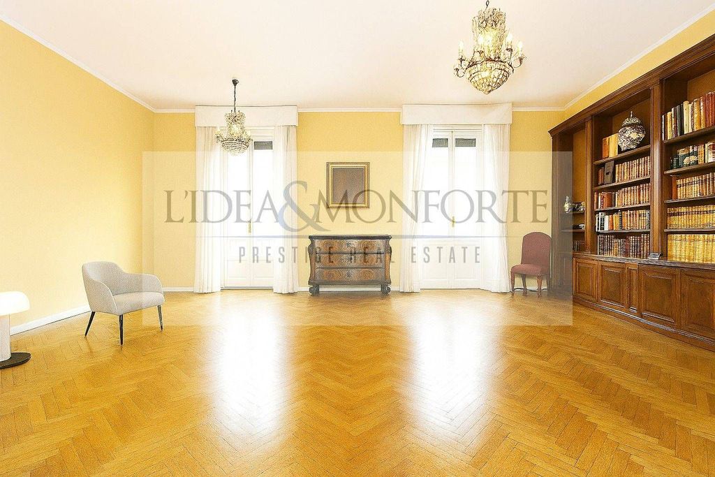 In the heart of one of Milan's most refined areas, between Corso Plebisciti and Piazza Risorgimento, stands this elegant apartment of approximately 184 m², located on the fifth floor of an elegant early 20th-century building. The building features a full-time concierge service and an elevator, as well as well-maintained common areas. Upon entering, you are greeted by a spacious entrance hall leading to a double living room with large, small windowed balconies overlooking Via Ceradini. The spaces are airy and expertly arranged, with high ceilings and parquet floors that lend a warm and refined feel. The sleeping area currently houses four bedrooms with small balconies, ideal for large families or those seeking a study or guest room. The eat-in kitchen offers a functional and welcoming space, suitable for everyday conviviality. The two bathrooms with windows complete the sleeping area with elegance and practicality. The property also features a delightful terrace that enjoys a tranquil internal view. The triple exposure—on Via Goldoni, Via Ceradini, and the courtyard—guarantees constant natural light and pleasant ventilation throughout the day. The interior spaces are in good condition, although partial modernization is recommended. The regular floor plan and the absence of load-bearing walls allow for maximum customization. The apartment is equipped with central heating with radiators and is embellished with original period details. A cellar and an attic complete the property. Ideal for those seeking a home that combines space, brightness, and prestige.