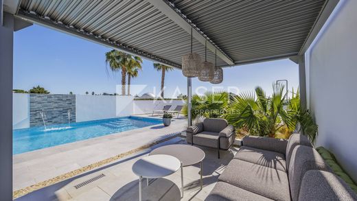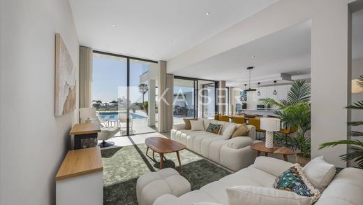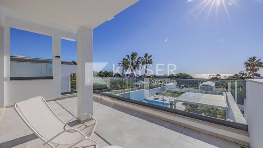 This majestic south-facing villa, recently extended with a heated swimming pool, garage, garden, panoramic sea views and flooded with natural light, is located in a exclusive area, within walking distance of a magnificent beach and several renowned restaurants, and a few minutes' drive from the marina and the town of Albufeira.Basement: Three garages with automatic gates, pump room, and electric car charging point. Ground Floor: Entrance hall, two bedrooms with en-suite shower rooms and direct access to a pateo, and a TV room (which can also be used as an additional bedroom). Living/dining area with open-plan kitchen, fully equipped and pateo doors giving access to the pool area, covered lounge area and the garden. Laundry/utility room housing three batteries of the PV system.First Floor: Master bedroom with automatic blackout blinds, en-suite bathroom featuring underfloor heating, dressing room, and a large south-facing terrace with stunning sea views. Small shower room; additional bedroom accessed from the large north-facing terrace and another south-facing terrace.The villa has been recently extended and currently features air conditioning throughout, 19 photovoltaic panels on the roof, a heated swimming pool with electric cover and fountain, outdoor shower and electric awning.