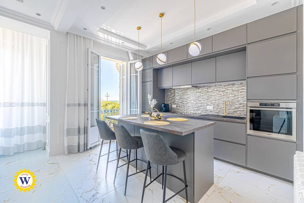 We are pleased to exclusively offer a 3-room apartment, recently renovated, located on the Promenade des Anglais. It is situated in a well-maintained bourgeois building with an elevator, where the façade renovation has recently been completed.