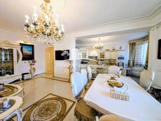 Just steps from the beaches and the Promenade des Anglais, this exquisite luxury family apartment is situated on the 5th floor of an Art Deco building with recently renovated façades.