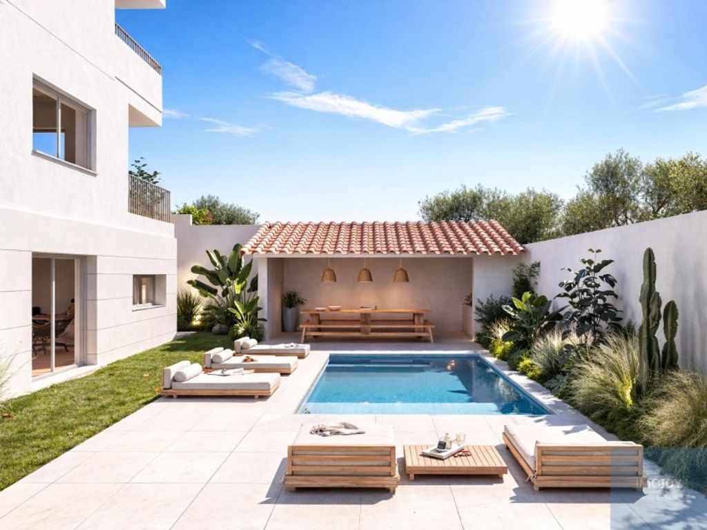 The south/west facing pool has total privacy with many lounge areas and a pool house with barbecue will be created.