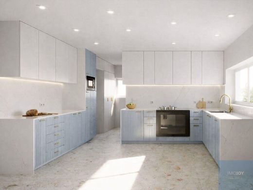 Entrance hall with 11.72 m2 and small wardrobe, social bathroom with 2.40 m2, a spacious kitchen with 17.29 m2 fully equipped, with plenty of storage, pantry, with dining area and exit to the outside and pantry area with 5.79 m2.