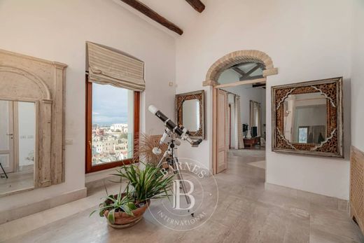 The living area is defined by its exceptional brightness and wide panoramic windows overlooking the city and the sea, creating a warm and refined atmosphere.