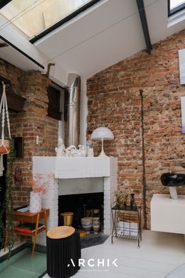 Rehabilitated in 2005, this unique, vertically conceived space is a place where light circulates freely thanks to large skylights and a volumetric architecture. Behind a discreet facade, the space is fluidly organized, blending exposed brick, metal beams, skylights, and understated materials in an industrial style.