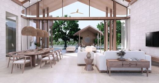 Each villa comes fully furnished, with a built-in kitchen and high-quality finishes throughout. The private infinity pool serves as the centerpiece of the outdoor area, complemented by a gourmet dining pavilion and lush landscaped gardens, creating an ideal environment for relaxation, entertaining, and enjoying tropical living.