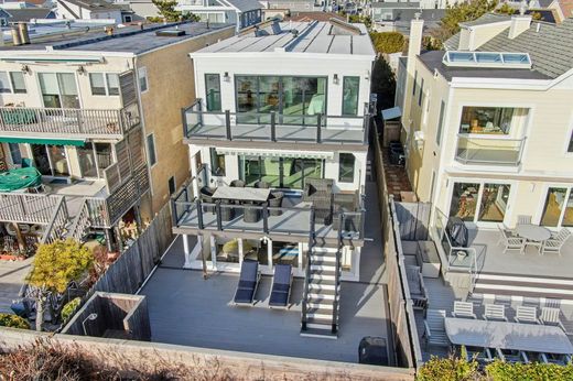 Enjoy direct oceanfront living in the sought-after West End of Long Beach. This spectacular contemporary offers multiple levels of light-filled living space thoughtfully designed to capture sweeping Atlantic Ocean views. A modern coastal designed fully renovated six-bedroom, four-bath masterpiece! The open-concept main level features a chef’s kitchen with premium appliances, custom cabinetry, oversized quartz island, and refined high-end finishes, flowing seamlessly into expansive living and dining areas. Large sliders open to an ocean-facing deck, while two bedrooms and a full bath complete this level. The top floor is anchored by a private primary suite with panoramic ocean views, its own oceanfront deck, and a spa-inspired en suite bath. Two additional bedrooms and a full bath complete this level. The lower level offers a spacious family room with access to a private deck just steps from the sand, along with a guest bedroom, full bath, laundry, and direct garage access. Additional features include radiant heated flooring throughout, central air conditioning, monitored alarm system, outdoor shower, and so much more. A rare opportunity to own a turnkey, direct beachfront home offering exceptional views and sophisticated modern updates throughout.