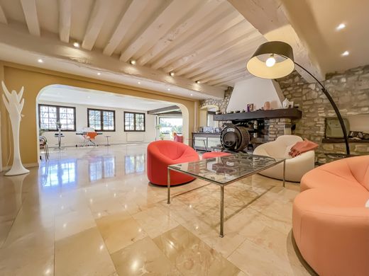 EXCLUSIVE TO MMI - REMARKABLE PROPERTY ON A BEAUTIFUL PARK - LARGE RESIDENTIAL ESTATE - 24,800 SQM PARK - VIDEO AVAILABLE ON THE AGENCY WEBSITE. Located in Goussonville, between Mantes-la-Jolie and Thoiry, in the Yvelines department (Île-de-France region), this vast residential estate is situated at the entrance to the village, in a peaceful and quiet area. Comprising beautiful stone buildings, it offers excellent potential for all types of lifestyles and is just minutes from all amenities. The property, with 560 sqm of living space, includes: 1/ Main house (3 levels, with ground floor, garden level, and first floor): - Spacious and beautiful living and reception rooms opening onto the outdoors. - Bright and functional spaces - Charming features: exposed stone, wooden architectural elements, large surfaces and volumes. 2/ Detached house (2 levels, with ground floor and first floor): - Adjoining the main house. - Private garden. - Potential for expansion. 3/ Exterior features: - Central swimming pool with pool house. - Inviting terrace with excellent southwest exposure. - 24,800 m² grounds, partially enclosed and extensively landscaped with magnificent mature trees. - Charming features: exposed stone, wooden architectural elements, large tiled areas. 4/ Potential projects: This property is perfectly suited to a country living project for one or more families, but also for customized projects such as: - Guest house. - Tourist accommodation. - Seminar organization. - Wellness and holistic health center. EXCEPTIONAL ESTATE - IDYLLIC SETTING - CUSTOMIZABLE PROJECT - SOUTH-FACING - SWIMMING POOL Mandate 2064 - Energy rating: E - Price: €1,290,000 (including agency fees of 5% including VAT payable by the buyer) - Price excluding fees: €1,228,500. Information on the risks to which this property is exposed is available on the Géorisques website.