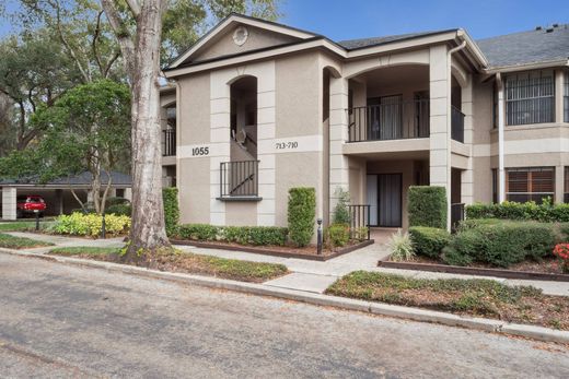 Experience refined living in the gated community of Kensington Park. This first-floor, two-bedroom, two-bath residence blends thoughtful upgrades with timeless craftsmanship. The kitchen features granite countertops, stainless steel appliances and a breakfast bar, complemented by tile flooring throughout. A fully renovated wood-burning fireplace anchors the expansive living and dining area, which opens to a screened patio for seamless indoor-outdoor living. Detailed with solid wood crown molding and hardwood accents throughout, the home offers a classic aesthetic that will appeal to those who value quality construction and enduring design. The primary bedroom includes a walk-in closet with a custom organizational system. With a front and rear patio, the residence supports a relaxed Florida lifestyle. Ideal for those seeking secure, low-maintenance living, whether full-time or seasonal, the community offers two pools, tennis and pickleball courts, a fitness center and a clubhouse. An assigned covered parking space and ample guest parking complete the offering. Kensington Park is conveniently near shopping, dining and Interstate 4, providing easy access throughout Central Florida.