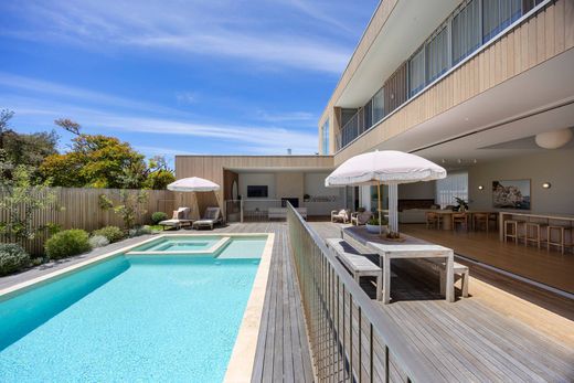 Elevated Resort-Style Design Moments from Tyrone Foreshore Design elegance meets effortless seaside resort-style living in this striking as-new retreat, positioned moments from the golden sands and sparkling blue waters of the Tyrone Foreshore. Created for those who value effortless luxury, generous proportions and seamless indoor-outdoor entertaining, the home captures the essence of relaxed Mornington Peninsula living. Spaciously composed interiors unfold across a series of beautifully curated living zones, anchored by an inviting open-plan heart. The chef’s kitchen sets a benchmark in both form and function, appointed with dual Smeg ovens including steam and pyrolytic options, an induction cooktop and a built-in Smeg coffee machine. A striking Monreale marble island bench forms the centrepiece of the kitchen, defining the space with sculptural presence and timeless appeal, while a fully equipped butler’s pantry with sink ensures entertaining is effortless at any scale. An indoor open fireplace adds warmth and atmosphere to the cosy lounge, while expansive glazing draws natural light throughout and creates a fluid connection to the outdoors. Premium finishes in relaxed coastal tones and thoughtful zoning enhance daily living, offering flexibility for families and guests alike. Designed to impress year-round, the outdoor entertaining domain is a standout. An undercover alfresco zone with outdoor kitchen, natural gas BBQ and wood fireplace overlooks the heated swimming pool and spa, creating a private, resort-style environment. An outdoor shower and dedicated pool powder room add everyday convenience, while established gardens provide privacy and a genuine sense of escape. Accommodation is equally impressive, comprising 5 generously proportioned bedrooms. The privately positioned primary suite is located on the ground level, creating a peaceful retreat with walk-through wardrobes and a spacious ensuite. Upstairs, the remaining 4 bedrooms are serviced by an additional 2 bathrooms and are complemented by a large second living room and a separate study area, completing an ideal family accommodation layout. Positioned within an easy walk for a swim at the Tyrone Foreshore or a morning coffee and paper at Blairgowrie Village, this outstanding residence offers a rare opportunity to secure an as-new, resort-style sanctuary suited to permanent living or an elevated coastal escape. Proudly marketed by the team at Peninsula Sotheby's International Realty.