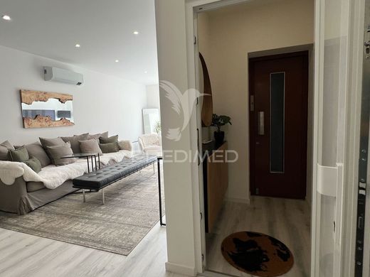 Location, location, location! Magnificent luxury three-bedroom flat, completely renovated, located on the prestigious Rua das Montras, the main pedestrian street in Caldas da Rainha, between Praça da Fruta and Benetton — the most exclusive part of the city. Set in an equally renovated building, consisting of only three flats, where each unit occupies an entire floor, this property offers privacy, comfort and distinction. With 155sqm of built area, it has 3 bedrooms, 3 bathrooms, a rare outdoor terrace along the three bedrooms, a balcony and an exclusive lift with direct access to the interior of the flat. The renovation was carried out to high standards, including 10 cm thermal and acoustic insulation, plasterboard walls, double-glazed windows and doors, electric external blinds, air conditioning throughout the house, large built-in wardrobes and a kitchen equipped with a washing machine/dryer and dishwasher. Absolutely central location, just a few steps from supermarkets, cafés, restaurants, pharmacy, shops, schools, shopping centre, cinema and cultural facilities. A 2-minute walk from the bus station, 6 minutes from the train station and 30 minutes by bike from the beach. A rare property in the centre of Caldas da Rainha — difficult to find a better location, quality of construction and exclusivity. (PD-057878)