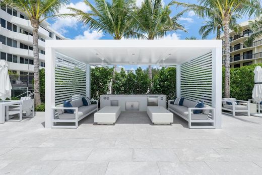 This exquisitely renovated two-bedroom apartment is located in one of Palm Beach's premier Intracoastal buildings. Every detail has been thoughtfully curated, beginning with a brand-new custom kitchen adorned with Hermes wallpaper and top-tier appliances. Features include a fully integrated and paneled Liebherr refrigerator and freezer, an Elica induction cooktop with under-counter ventilation, a Thermador steam convection oven, Fisher & Paykel dishwasher drawers, a beverage cooler, a large sink, and beautifully crafted cabinetry. Waterworks sconces add a refined touch throughout the space. Bathrooms have been fully updated with walk-in showers, Grohe thermostatic fixtures, Toto toilets, and designer wallpaper. Both bedrooms include spacious built-out closets, and the unit offers a washer and dryer, impact windows and doors, and high-end finishes throughout. Every element has been thoughtfully selected for both beauty and function. Residents enjoy private beach access and recently upgraded amenities, including the lobby, pool, gym, landscaping, and parking. With a full-time doorman and on-site manager, the building is secure, well-maintained, and ideally located. Select furnishings may be available for separate purchase.