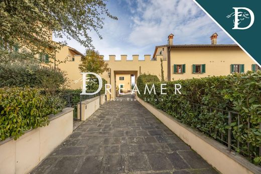 Splendid portion of a 16th-century historic villa with a swimming pool for sale, immersed in the authentic beauty of the Carmignano hills. This prestigious property spans approximately 650 square meters and includes state rooms, four bedrooms, five bathrooms , a scenic heated indoor swimming pool , 3,500 square meters of private land with an olive grove , and a large panoramic terrace.