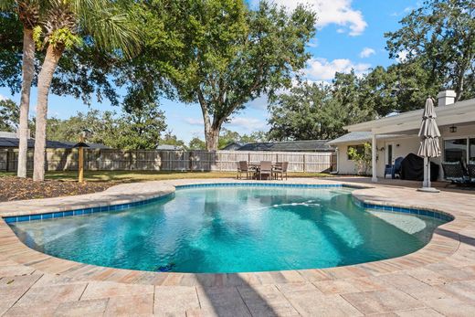 Welcome to 517 Whisper Wood Drive, a beautifully renovated four-bedroom, two-bath home on nearly half an acre, the largest lot in Sabal Point. Tucked away on a quiet cul-de-sac and framed by mature oak trees. This residence offers privacy, space and timeless character. Inside, the open, light-filled floor plan features soaring angled ceilings, a striking brick fireplace and effortless flow for everyday living and entertaining. The remodeled chef's kitchen is the heart of the home and showcases stainless steel appliances, stone countertops and custom cabinetry. The split primary suite offers privacy, while three additional bedrooms provide flexibility for family, guests or a workout/wellness Go outside to the private backyard oasis featuring a resurfaced saltwater pool, generous deck and expansive fenced yard, providing an inviting setting for recreation, relaxation and outdoor gatherings. The area includes ample room for a dog run and pets to play. A detached shed has been thoughtfully converted into an air-conditioned office, ideal for remote work or creative use. Additional improvements include a new roof in 2021, exterior paint in 2021, air conditoner in 2017 and sliding doors in 2022. Sabal Point is renowned for its tranquil, tree-lined walking and jogging trails, including a picturesque three-mile loop and direct access to the Wekiva River Buffer Conservation Area, providing an unparalleled setting for hiking, outdoor recreation and nature immersion. Ideally near major highways, upscale shopping, fine dining and top-rated Seminole County schools, this exceptional community offers a rare blend of natural serenity, refined lifestyle and everyday convenience.