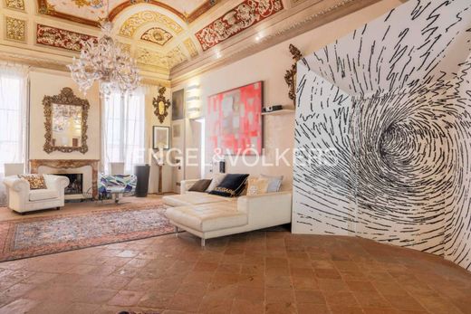 Splendid apartment located on the noble floor of a prestigious stately building, adjacent to the historic church of San Francesco in Modena.