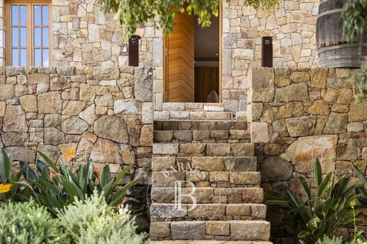 Nestled in the hills overlooking Ajaccio, in the residential area of Salario, this Corsican-style stone villa offers approximately 2,150 sq ft of living space spread over two levels, with partial views of the sea and surrounding mountains.