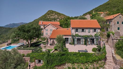 Area: 293 m2 Land area: 1100 m2 Bedrooms: 4 Bathrooms: 3 + 3 Exclusive historical estate with main, guest and staff houses, private pool and spacious yard. The main house consists of a designer-style living room with a fireplace, a dining room, a kitchen, two bedrooms, a bathroom and a guest toilet. The guest house consists of a living room, dining room, kitchen, bedroom, bathroom and toilet. The space is furnished with award-winning interior design of furniture and equipment. The property also contains a staff house consisting of a bedroom and a bathroom. All three houses are air-conditioned with separate heat pumps and each is covered with underfloor heating. The property offers a large area for rest and relaxation, with a beautiful swimming pool with sea-view. The pool area has a toilet and a shower as well. In the yard there is also a summer kitchen with a grill, an oven, and a refrigerator. In this part of the yard there are deckchairs, umbrellas and a large table for outdoor dining. The property offers a unique view of the Porto Montenegro marina, the Bay of Kotor, and the city of Tivat. The villa received Luxury Lifestyle Award for Best Villa Renovation Interior Design in 2025. The distance from the airport in Tivat is 13 km, and from the marina Porto Montenegro 4 km.