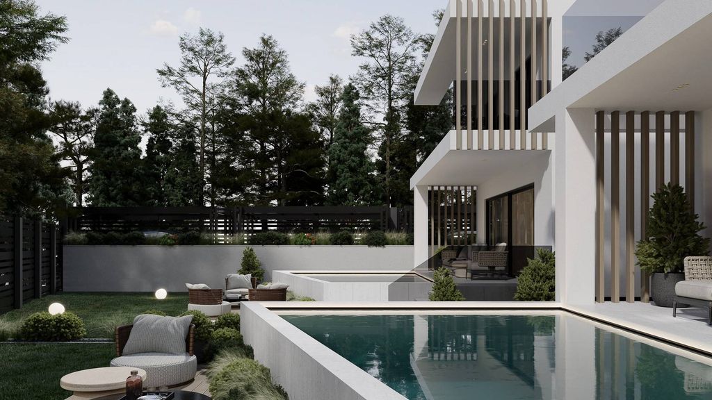 In total, the residence comprises four bedrooms, premium-quality materials, modern energy-efficient systems, and Smart Home infrastructure, highlighting the focus on quality construction and long-term value. The outdoor areas, including the private pool, garden, terraces, and parking spaces, complete an ideal setting for refined coastal living.