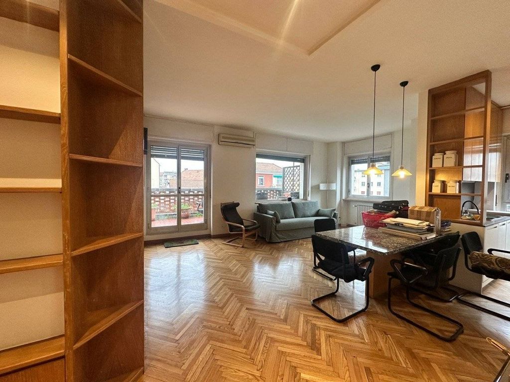 Studio Immobiliare Mille offers for rent, on the top floor of a stately building with large communal gardens and part-time concierge service, an elegant three-room apartment with a large top-floor terrace, available from March 1st. The property, in excellent internal condition, comprises the following: entrance hallway, spacious living area with large windows overlooking the spacious 40 sq m terrace, custom-fitted kitchen, pleasantly open but well separated from the living room by French doors and a small balcony, double bedroom with large wardrobes, single bedroom overlooking the terrace, comfortable bathroom with window and newly renovated shower, and a spacious closet. The apartment is also available for temporary rentals. The property features spacious, bright, and well-arranged spaces, making it an ideal solution for families, professionals, workers, or students. Located in the immediate vicinity of P. le Susa and Via Sismondi, the top-floor property enjoys significant brightness and tranquility. This excellent rental opportunity is complemented by its proximity to major transport links, such as the M4 blue line, the rail link, and buses, as well as its location in a lively area with plenty of amenities.