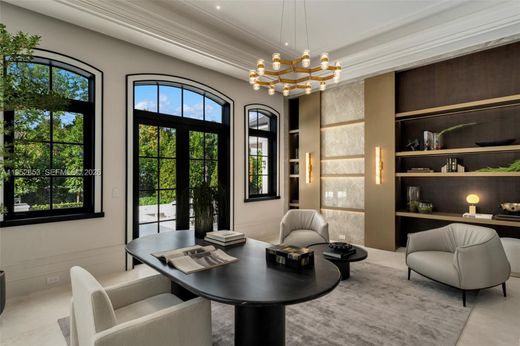 Brand-new Château St. Marie is a timeless French-inspired estate by acclaimed architect Ramon Pacheco, with interiors by Orballo’s Maribel Muniz, ideally set on a prestigious street in the heart of North Pinecrest near top-tier schools. Situated on a 37,897-SF lot with 9,644 SF of refined living space, the home features soaring ceilings, marble floors, bespoke European millwork, dramatic chandeliers, and a stately fireplace. The chef’s kitchen offers premium designer appliances and custom cabinetry. Resort-style grounds include an azure pool with water features, decorative bowls, Jacuzzi, fountains, covered terraces, and a summer kitchen. The residence boasts 7 bedrooms, 8 full baths, 2 half baths, dual primary suites on both levels, guest suite, walk-in wine cellar, home theater, 150 kW full-home residential generator, gated entry, and a 3-car garage with lift capacity.