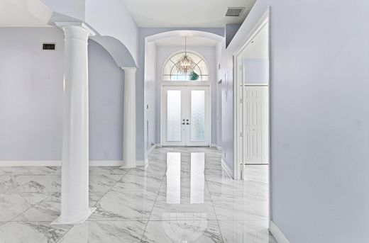 Effortless luxury, completely move-in ready. Set on a wide open lake with sweeping water views, this 4BR/3BA pool home in gated Boca Falls offers 2,348 SF under air and a 3-car garage. Every major update is complete, including a 2022 roof, 2023 A/C, and full impact windows and doors. The interior has been fully renovated with soaring ceilings, marble-look tile throughout, and a refined modern feel. The kitchen is crisp and elegant with white shaker cabinetry, quartz counters, island seating, stainless appliances, and wine fridge. Outdoors, the renovated saltwater pool, spa, and paver patio feel brand new and are fully smart-controlled, along with irrigation. 24-hour manned security, resort-style amenities, access to A-rated schools, and near top shopping and dining complete the experience