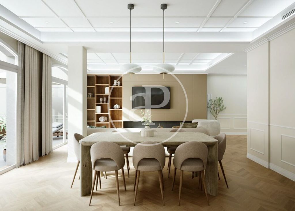 Located on the first floor of a great classic finca in the area of Ibiza and a few steps from the Retiro Park, we find this magnificent property of 234m2 according to cadastre. The house consists of four bedrooms, two of them with bathroom en suite and the master also has a spacious dressing room, the residence also has another full bathroom and a toilet. There is a wonderful social area divided into two environments, lounge and dining area, which gives way to a spectacular fully equipped kitchen with state-of-the-art appliances and impeccable design. Both the living room and the kitchen enjoy direct access to a wonderful terrace of more than 20m2 facing south, where you can enjoy wonderful evenings with families and friends.