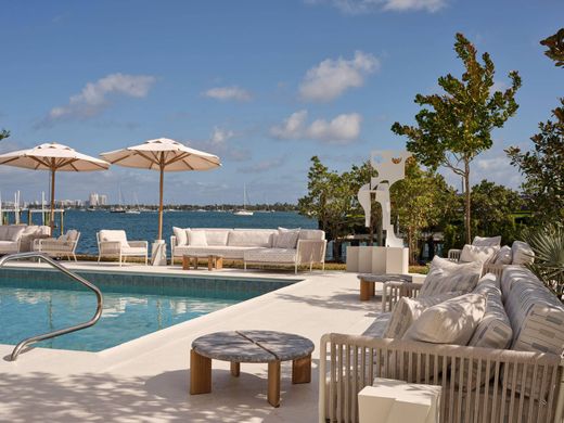 Outdoor living is unmatched: a 50 ft pool overlooking the Intracoastal, hot tub, fire pit, summer kitchen, & outdoor shower. Be the best host in town with your own oversized backyard Tiki Hut, equipped with a commercial-grade wraparound bar & 3 televisions.