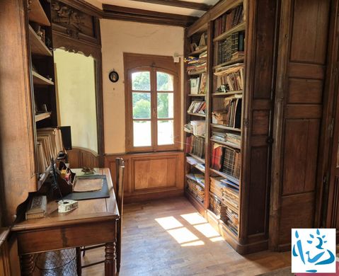 The notaries of Mortagne-au-Perche, SELARL GERVAIS DECAEN POTIER SOYER-CHOPLAIN, offer for sale this exceptional property located within the Perche Regional Natural Park, a few minutes' walk from the charming village of La Perrière with its shops. This human-scale château, boasting unobstructed views, was built in the 16th century and has undergone various modifications over the following centuries. The ground floor comprises: an entrance hall with a carved oak staircase, a kitchen-diner with a fireplace, two WCs, a first living room with a fireplace, a dressing room, an office opening onto a small turret, a dining room with a fireplace and Louis XIV parquet flooring, a living room with a monumental carved oak fireplace and Louis XIV parquet flooring, a hallway, a scullery, a vaulted room, a pantry, a woodshed, and a winter garden. - On the first floor: a landing leading to two bedrooms with washrooms, one with an alcove; a hallway leading to a bathroom, two bedrooms, a circular room in the turret, a shower room, a toilet, and a laundry room. - On the second floor: a landing leading to two bedrooms with washrooms and three attics. - In the basement: two cellars, a vault, and a well. A watchtower built in 1506, listed in the Supplementary Inventory of Historical Monuments, topped by a bell tower, includes on the ground floor: a chapel to be renovated. - On the first floor: a room with a fireplace, and on the second floor: a room. The property has numerous outbuildings: a double garage with a workshop, a former bakehouse, a cellar, a wine press, a sheepfold, and four houses to be restored: a three-room gatehouse and three two-room houses, one of which has a turret. It is built on a walled park of 1.25 hectares, comprising an ornamental garden and vegetable garden with the remains of former stone-lined ponds. It also includes a wood of approximately 3.26 hectares and a meadow of approximately 2 hectares. The entire property covers a total area of 6.40 hectares. For more information, please contact our real estate department at +33 2 33 85 11 66. Agency fees of 3.99% (including VAT) are payable by the buyer. Price excluding fees: €865,000. This property has excessive energy consumption: Energy rating G, Climate rating C. Estimated average annual energy costs for standard use, based on 2021 energy prices: between €9,370.00 and €12,720.00. Information on the risks to which this property is exposed is available on the Géorisques website: georisques.gouv.fr.