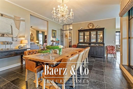 Opgelet: dit pand ligt net buiten Schilde, in Zandhoven maar is vanuit Schilde vlot bereikbaar en absoluut het ontdekken waard dankzij zijn unieke ligging en uitzonderlijke uitzicht. Een unieke nog nooit geziene duplex met een adembenemend uitzicht op het Albertkanaal!Gelegen in een serene buurt, nabij de kerk van Massenhoven en op 5 min van het bruisende centrum van Zandhoven, bevindt zich dit uitzonderlijk vastgoed. Dit heeft nog geen naam! Een waar juweel, compleet met een garage, carport en een uitgestrekte kelderverdieping, klaar om al je creatieve impulsen tot leven te brengen. Maar laten we bij het begin beginnen!Gelijkvloers:Bij aankomst kun je je voertuig parkeren in de garage met een geautomatiseerde poort, of in de carport aan de achterzijde. De inkomdeur is langs de zijkant. Vanuit de garage kom je in de inkomhal en die leidt je met de lift en/of trap naar de eerste verdieping.Verdieping:Op de eerste verdieping bevindt zich een gastentoilet en een ruime op maat gemaakte vestiairekast in eikenhout. Een smeedijzeren deur leidt naar het hart van deze woning, de fantastische leefkeuken (ca 36m²) op natuurstenen vloer waar je uren in kan kokkerellen en gezellig keuvelen. De eikenhouten keuken is voorzien van alle confort, een dubbele spoelbak, inductiekookplaat, vaatwasser en veel opbergruimte, met aansluitend een handige bijkeuken (ca 10m²) met een combi-oven, stoom/oven, extra spoelbak, koelkast/diepvries en nog meer bergruimte. Vanuit de keuken stap je het overdekte terras op, met warmtebrander voor de koudere dagen, en met een prachtig uitzicht op het kanaal! Heerlijk om hier ’s morgens je koffietje te drinken. Aan de voorzijde van het pand bevindt zich een bijzonder knusse woonkamer van wel 42m², verdeeld in een televisiehoek met een gashaard en een kantoorruimte, die toegang biedt tot de hal via een prachtige smeedijzeren deur.Aan de kanaalzijde is er nog een zithoek met uitzicht op de voorbij varende boten en met een ingebouwde dranken kast (circa 27m²). Hier vind je ook een trap naar de tweede verdieping, maar als je de voorkeur geeft aan de lift, is dat ook mogelijk, dan loop je even de hoek om.Tweede verdiep: Op de tweede verdieping bevinden zich de slaapvertrekken. De unieke hoofdslaapkamer (ca 21m²) biedt toegang tot een open zonneterras met luifel van maar liefst 24m², met een prachtig panoramisch uitzicht op het kanaal en de omgeving. De master heeft een eigen badkamer met een ruime douche, een verzonken bad en een wastafel (ca 11m²), een giga dressing (ca 18m²) en een grote wasruimte (ca 14m²) met een spoelbak, ingebouwde kasten en aansluitingen voor een wasmachine en droger. Vanuit de wasruimte heb je ook toegang tot het terras. Daarnaast zijn er nog twee slaapkamers van respectievelijk 18m² en 22m², beide voorzien van parketvloeren, waarbij de achterste kamer ook toegang heeft tot het terras. In de nachthal is er nog een gastentoilet en ingebouwde kasten.Kelderverdieping:Een extra troef van deze woning is de kelderverdieping, waar al je stoutste dromen werkelijkheid kunnen worden. Of je nu wilt knutselen, pottenbakken, fitnessen, een mancave wilt creëren, of een speelruimte wilt inrichten, hier kan het allemaal. De wijnkelder is alvast voorzien.Terrassen:De woning beschikt over twee ruime terrassen van 24m², één bij de keuken en één bovenaan bij de twee slaapkamers. De volledig aangelegde voortuin met oprit en achterom naar de carport met berging biedt een uitnodigende entree. Een poort achteraan geeft directe toegang tot het kanaal, ideaal voor ontspannen wandelingen.Bijzonderheden:- Rustig in een rustige omgeving - Instapklaar en luxueus afgewerkt - 364m² bewoonbare opp + garage + carport + kelder van 182m²- Laag energieverbruik (Lage EPC-waarde)!- Automatische sunscreens aan kanaalkant - Overal voorzien van vliegenramen - Vloerverwarming in alle ruimtes- Airconditioning in alle vertrekken.Wil je meer van deze prachtige woning zien? Bekijk onze 360° tour: bouwplannen kan je contact opnemen met ons kantoor. Informatieplicht: Vergunning uitgereikt – woongebied – geen rechtelijke herstelmaatregel of bestuurlijke maatregel opgelegd – geen voorkooprecht – verkavelingsvergunning – klim aanwezig – niet overstromingsgevoelig P-score D & G-score C – EPC 87,82kWh/m² - EK conform - asbest nvt