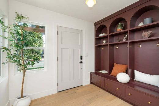 Settle into life in this beautifully remodeled Sunset Park home, just moments from beach days, neighborhood cafés, and easy coastal strolls. Designed with relaxed Westside living in mind, the home welcomes you with wide-plank wood floors, abundant natural light, and an easy, beach-inspired aesthetic. Vaulted ceilings with exposed beams and a statement fireplace create an open, comfortable living space that naturally lends itself to casual weekends and gathering with friends. Framed by a striking wide arched opening, the spacious kitchen flows easily into the living and dining areas, reinforcing the home’s open layout. Custom cabinetry, beautiful countertops, premium appliances, convenient pot-filler, and a generous peninsula create a space that works just as well for everyday living as it does for entertaining. The primary bedroom offers a peaceful retreat with vaulted beamed ceilings, direct outdoor access, and a spa-style bathroom featuring designer finishes and a spacious glass-enclosed shower with built-in bench. Additional bedrooms are bright and flexible, ideal for guests, workspace, or creative use, while custom built-ins throughout add both style and functionality. The backyard is designed for year-round enjoyment, offering multiple decks for dining and lounging alongside a generous lawn that creates a welcoming outdoor setting. Located in the heart of Sunset Park, the home sits just minutes from Ocean Park and Main Street favorites, local cafés, farmers’ markets, neighborhood parks, biking paths, yoga and Pilates studios, and highly regarded schools. The beach is close by, with easy routes to the 10 and 405 when heading across the Westside or around town.