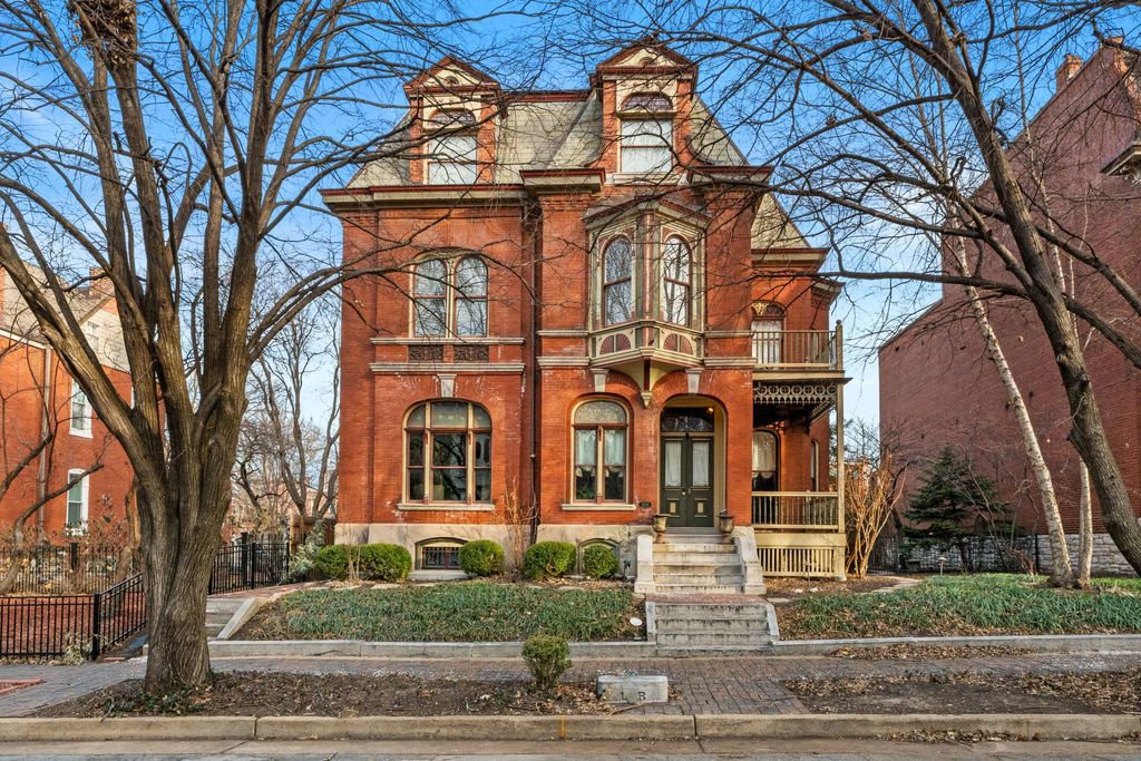 Built in 1884 for Civil War Major Leo Rassieur, this Victorian Manse in the heart of Lafayette Square blends historic character with modern comfort. The property includes the main residence, a two-story carriage house, and a garage, all set on beautifully landscaped grounds. The gracious living room overlooks the tree-lined street and showcases a large stained-glass window and one of many original tiled fireplaces. Hardwood floors, intricate millwork, pocket doors, and multiple fireplaces continue throughout. Formal living, parlor, and dining rooms offer effortless flow for entertaining. The chef’s kitchen features high-end appliances, generous cabinetry, a center island, a breakfast area, and a butler’s pantry with an adjacent powder room and bar. The primary suite includes abundant closets, a bath with heated floors, and a soaking tub beneath a bay window. Upstairs are three additional bedrooms, including one en-suite, plus a third-level bedroom, bath, and office. Second-floor laundry, a two-car garage, and a carriage house with an apartment and gym complete this property. Just steps from Lafayette Square Park and its vibrant dining scene. Lafayette Square Pool membership included (current waitlist approx. 5 years).