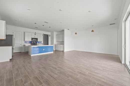 Experience the pinnacle of modern luxury in this stunning, 2024-built ''Key Largo'' model, situated within the highly coveted, 55+ community of Veranda Preserve. This pristine single-story residence boasts over 2,300 square feet of meticulously designed living space, featuring three spacious bedrooms--each with its own private en-suite bathroom--plus a versatile den and an additional powder room. From the moment you step through the grand foyer, you are greeted by volume ceilings and elegant ceramic tile flooring that flows seamlessly throughout the open-concept floor plan. At the heart of the home lies a chef's kitchen, anchored by a massive cook island with sleek countertops and premium stainless steel appliances. This culinary masterpiece overlooks the expansive Great Room and dining area, creating an inviting atmosphere for both intimate family dinners and large-scale entertaining. The glass windows and doors flood the interior with natural light, offering serene views of the lush preserve and neighborhood greenery. The split-bedroom layout ensures maximum privacy, with the opulent owner's suite serving as a secluded sanctuary complete with dual walk-in closets and a spa-inspired bathroom.