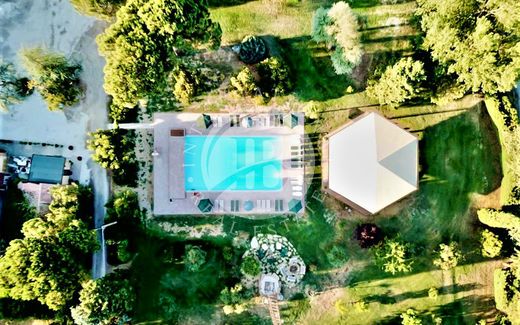 The property extends over a well-maintained park of approximately 9,600 sqm, enriched with ornamental trees and tall plants, ensuring privacy and a serene atmosphere. Outside, there is a panoramic swimming pool with a solarium and a large gazebo of about 160 sqm, perfect for events, ceremonies, retreats, or relaxing moments surrounded by greenery.