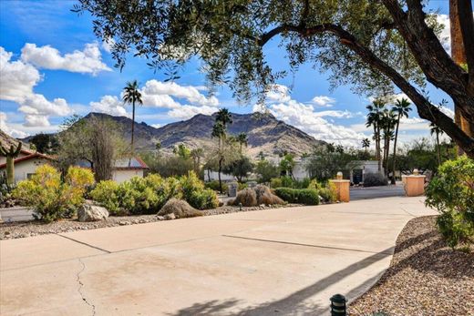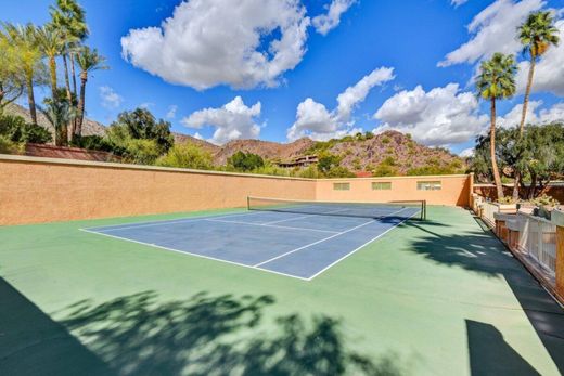 Tremendous value provided in this fully buildable flat lot, surrounded by stellar mountain views in quiet Tatum Canyon, a prestigious, secluded location sought after by local residents. A meticulously cared for Dave Hanson custom home (5841 s.f.) currently occupies the lot, complete with diving pool and N/S tennis court. Graciously set back from the street, with a circular drive and gated front courtyard entry, the footprint is in place to create a new masterpiece for modern day living (NO PV HILLSIDE ORDINANCE ON THIS LOT, & NO HOA) The breathtaking 360 degree mountain views offer both solace and majesty. The Tatum Canyon location is convenient to shopping, dining, airport travel, and freeway access despite its secluded feel; one reason it is a favorite of locals.
