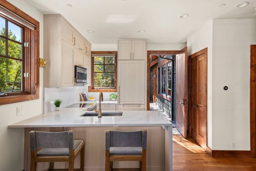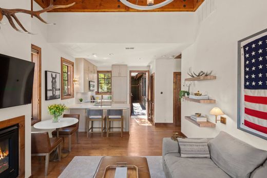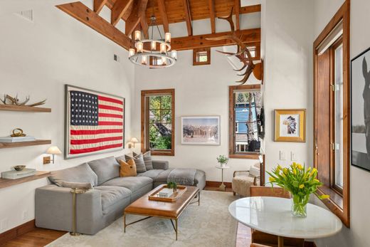 Unique opportunity to own this beautifully remodeled top-floor corner one-bedroom property that is located in the coveted Christiana complex in Aspen's West End. Its open floor plan, three walls of windows, a cathedral beamed ceiling, inviting gas fireplace and hardwood floors make this a great property for your Aspen home. The new modern kitchen includes quartz countertops, stainless steel appliances and lots of natural light. The bedroom has a king bed with luxury bedding and blackout shades for maximum comfort. The remodeled bathroom has plenty of room with double vanity sinks and a spacious steam shower. All new high-end Restoration Hardware furnishings and accessories make this a great luxury home. Views of Smuggler, Aspen and Red Mountains. There is a stackable washer/dryer in the condo, and complex amenities include private storage closet, pool & hot tub, walk to downtown or take convenient cross-town shuttle.