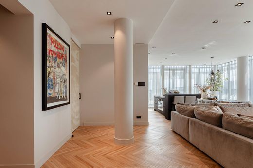 The large glass façades allow you to fully embrace the vibrant city life outside or close it off entirely to enjoy privacy and tranquility. The high-quality materials and finishes ensure a refined and comfortable living experience. The interior has been designed under the supervision of internationally renowned interior architect Pieter Laureys and finished to the highest standards. The apartment is offered including new, carefully selected bespoke furniture.