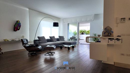 In the charming setting of Rimini's historic center, Eusebi Case offers for sale an elegant and modern semi-penthouse with a sophisticated design, featuring large, bright rooms and high-quality finishes. Located on the fifth floor, the property enjoys excellent exposure and large windows that ensure natural light throughout the day, enhancing the spaces and selected materials. The entrance leads to the scenic living area of approximately 70 square meters, consisting of a refined living room and a spacious dining room. A large French window directly connects the living area to the approximately 90 square meter panoramic terrace: an exclusive and striking space, perfect for socializing, al fresco dining, or simply relaxing with a view of the city's rooftops. The eat-in kitchen, featuring a contemporary design, is fully equipped with state-of-the-art appliances and custom solutions that combine aesthetics and functionality. The sleeping area, well separated from the living area, offers a master bedroom with a large walk-in closet, two single bedrooms—one with access to a small balcony overlooking the rooftops of the historic center—and two bathrooms with windows: the first with a bathtub and shower, the second with a shower and sauna. The property guarantees maximum privacy and tranquility. Silence, brightness, and quality construction ensure a high level of living comfort. The entire house is served by professional air conditioning systems.