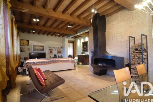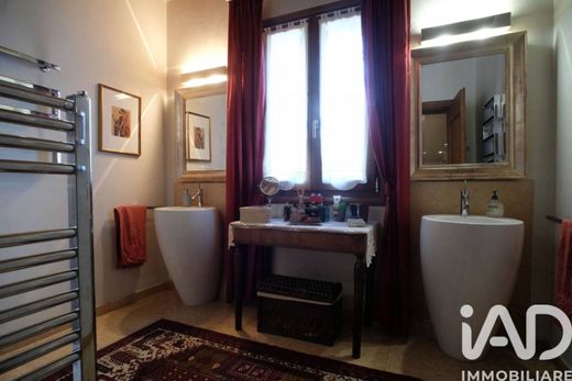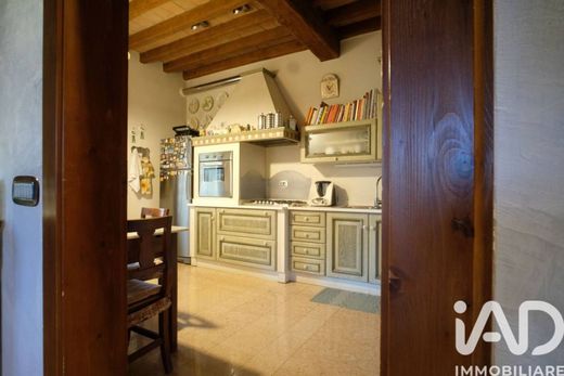The entrance opens onto a living room of rare beauty, flooded with natural light and graced by a fireplace that defines the room's character. The floors, which extend throughout the home, are crafted from fine marble or antique Cadore wood, lending a unique warmth and prestige. The spacious and functional eat-in kitchen opens onto the beautiful monumental porch, transforming into the ideal space for convivial al fresco dining overlooking the private pool.