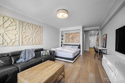 IMPECCABLY RENOVATED STUDIO WITH UNLIMITED SUBLETTING AFTER 2 YEARS OF LIVE-IN.Perched on the seventh floor, this immaculately gut-renovated studio combines modern luxury with thoughtful design. The home opens to a bright, expansive layout and features a custom king-size hideaway bed for functionality when entertaining. The chef‘s kitchen boasts custom white lacquer cabinetry, quartz countertops, and precision-crafted inserts that maximize storage. With a suite of premium appliancesincluding Bosch, Liebherr, and Bertazzoniand a sink garbage disposal, you have everything needed to elevate your culinary experience.The spa-inspired bath features a walk-in shower wrapped in sleek finishes and a vent fan. The living space is anchored by beautiful hardwood floors, abundant storage, and a huge walk-in closet. The building offers the conveniences of a full-time doorman, live-in superintendent, on-site management, laundry facilities, private storage, an attached garage, and a bike room. With The Shops at Columbus Circle and Central Park just steps away, and the A/B/C/D/1 trains around the corner, the location is truly unmatched.