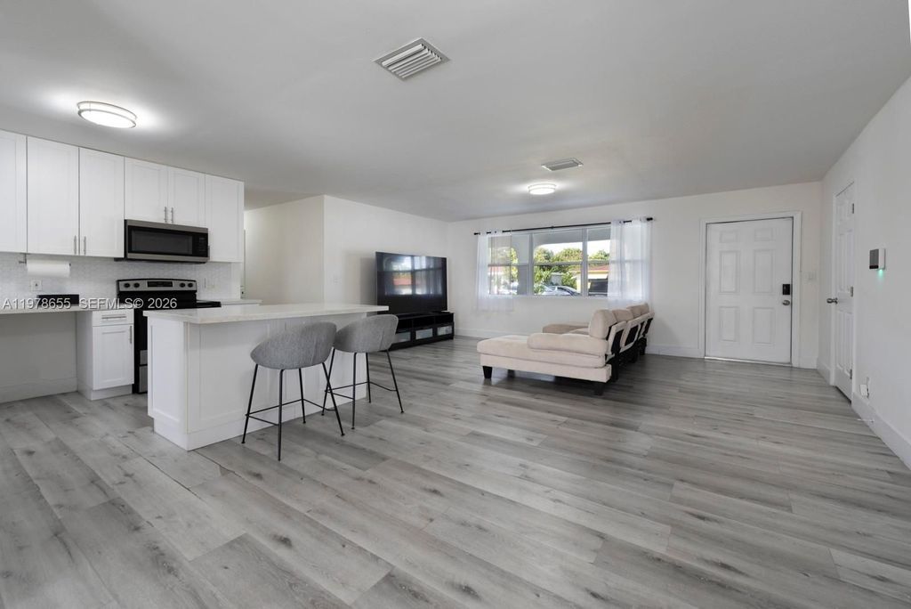 Step into a home designed to be fallen in love with. This fully renovated residence boasts a stunning open-concept layout bathed in natural light, where every detail has been meticulously curated. The heart of the home is a chef-inspired kitchen featuring white wood cabinetry, a functional center island, sleek quartz countertops, and premium stainless steel appliances. With four spacious bedrooms and dedicated spaces for a family room, TV room, and formal dining, there is room for everyone. Enjoy peace of mind with 3 years old waterproof flooring throughout, a roof under 8 years old, and a completely updated HVAC system. This move-in-ready gem is waiting for you—schedule your tour today! Master closet system is not affixed and does not convey - Seller willing to sell for $2,500.