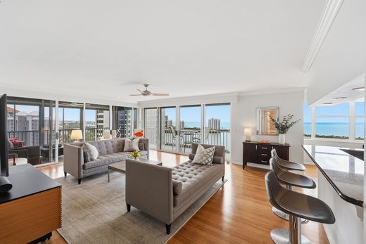 Welcome to St. Nicole in Pelican Bay, where refined coastal living meets one of Naples amenity-rich beachfront communities. On the 16th floor, this rare south-end residence captures extraordinary 270-degree vistas, a distinctive feature not found in many end units, offering sweeping views of Clam Pass, the Gulf and Pelican Bay landscape. This turnkey, elegantly updated two-bedroom plus den, two-bath residence is filled with natural light and designed for effortless living. The enclosed lanai adds approximately 155 square feet of interior living space, creating an ideal setting to enjoy stunning western sunsets. The flexible floor plan allows the den to be easily converted back to a third bedroom if desired. Interior highlights include three custom California walk-in closets, advanced window treatments, custom motorized solar shades, designer louver shutters in the bedrooms and expansive floor-to-ceiling mirrors that enhance light and space throughout the home. The residence also features in-unit washer and dryer, additional storage and thoughtful finishes throughout. St. Nicole is an intimate enclave of only 97 residences on the desirable southern end of Pelican Bay, offering a private callbox for secured tram access near the building. Residents enjoy private beachfront access with chair and umbrella service, two beachfront dining venues, tennis, pickleball, fitness and wellness facilities, sailing, kayaking and miles of scenic nature trails. Undergoing comprehensive building enhancements, St. Nicole continues to elevate its design, amenities and long-term value within Pelican Bay's premier coastal lifestyle.