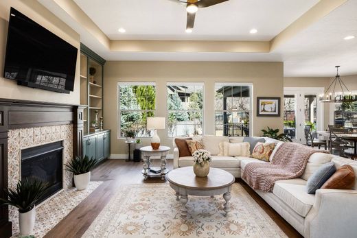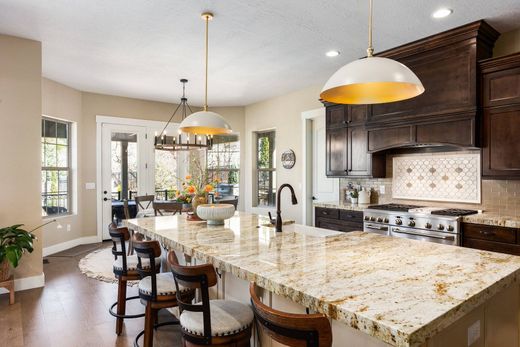 Welcome to this exceptional custom residence where thoughtful design, refined finishes, and breathtaking natural light come together to create a truly elevated living experience. From the moment you enter, soaring ceilings and an impressive wall of windows flood the home with light, seamlessly connecting the interior spaces with the beauty of the surrounding landscape. Designed for both everyday comfort and sophisticated entertaining, the home offers multiple outdoor living areas, including a covered patio, a striking outdoor gas fireplace, and a hot tub, creating the perfect setting to relax or host under the stars. At the heart of the home, the chef's kitchen blends beauty and functionality with custom cabinetry, soft-close features, an expansive walk-in pantry, and the rare convenience of dual dishwashers built into the oversized island, making entertaining effortless. Perfectly positioned on the highly desirable Sandy bench, this rambler offers unrivaled access to Utah's world-class outdoor lifestyle. Whether it's skiing, hiking, cycling, horseback riding, or peaceful neighborhood strolls, adventure is always just moments away. The home offers generous bedrooms and bathrooms, abundant storage, and thoughtfully curated details throughout, including a custom wine room and a fully equipped basement kitchenette, providing ample space to gather, unwind, and grow. No detail has been overlooked, with a long list of upgrades including an outdoor gas fireplace, hot tub, security system, on-demand hot water, MinaAire ceiling fans throughout, custom master closet, epoxy garage flooring, landscape lighting, drip irrigation and a 220V 30-amp garage outlet. This is a rare opportunity to experience luxury living in one of Sandy's most sought-after locations, where comfort, craftsmanship, and lifestyle meet.