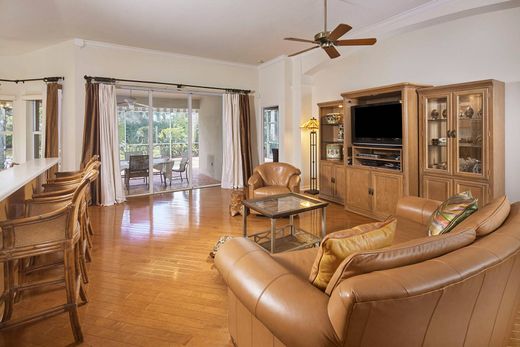 This extremely private waterfront villa is in the charming enclave of Troon Lakes in Pelican Marsh at end of a cul-de-sac. The peaceful, idyllic lakeside setting has mature tropical vegetation secluding the back and side yards. The flexible floor plan features three bedrooms plus den, formal, informal and casual dining options, two full baths plus a powder bath, a large great room and a laundry room with a sink and window. The primary bedroom has lanai access and a bath with dual sinks, a sunken soaking tub plus a large shower. High ceilings, many windows and hard surface flooring. The waterfront lanai has a swimming pool and ample room for plantings, sunning, and covered and uncovered dining areas with western exposure for beautiful sunset colors. Double attached garage with a great driveway for guest parking. Near shopping, restaurants, theaters and world-class beaches offering guarded gate entrances, many amenities, gym, tennis programs, pickleball courts, bocce ball, miles of recreational and biking trails, and many planned social activities.