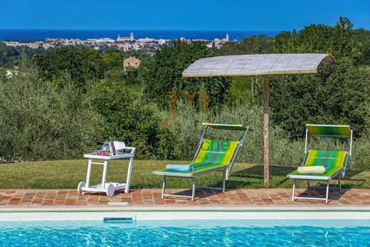 Villa La Limonaia is a beautiful rustico expertly rebuilt from scratch in the early 2000s.It is located just 3 km from the beaches of the town of Fano (PU), in the Marche region of Italy, in a quiet and secluded location. The view from here is breathtaking, sweeping from the rolling hills of the Marche region to the blue sea in the distance. The town of Fano, which is only 2 km away, is well known to tourists (and others) for its well-equipped sandy beaches, numerous restaurants, bars, stores and shopping centers that make it dynamic and attractive.Less than half an hour by car you can also reach the Riviera Romagnola, with the cities of Rimini, Riccione and Cattolica, perfect for those looking for a bit of nightlife and movida.Villa La Limonaia, about 420sqm in area, was demolished and rebuilt ex-novo in the 2000s preserving yes a rustic style but certainly sober and elegant. Beams, tiles, fireplaces and terracotta-colored stone floors give the villa an absolute charm. The villa is then surrounded by a majestic park of about 5000m manicured and adorned with flowers, hedges and trees of various kinds and colors, in which is located the salt pool of 14x8m (maximum height of 2.40m).There is also a 60sqm dependance consisting of open space living area with kitchen and living room, a bathroom and a large room currently divided in two by a sliding sheet (4 beds total).Description of the interiors:The main property, very large, is distributed on two levels. The ground floor, enhanced by the beautiful 40sqm veranda, consists of entrance hall, large living room with fireplace, dining room, kitchen and bathroom. On the second floor the sleeping area with 5 double bedrooms, 2 of which with private bathroom and 2 other bathrooms.There is an underground garage of about 120sqm and other outbuildings for a total of 40sqm.Included in the property a land of about 3.5ha, of which 2ha of olive grove (about 460 plants) and 1.5ha of forest.The water comes from the public aqueduct and there is also a well used for automatic irrigation. There is also a concession for the use of an ancient Roman aqueduct.The villa has 10kw of photovoltaic with active incentive until 2028, geothermal system for heating with heat pump and radiators and solar thermal for hot water. Villa La Limonaia is therefore totally autonomous in terms of water and energy.Finally, the roof is ventilated, the ground floor is insulated, there is air conditioning only in the master bedroom, there is a perimeter alarm system with cameras and the gate is electric.It is sold unfurnished.