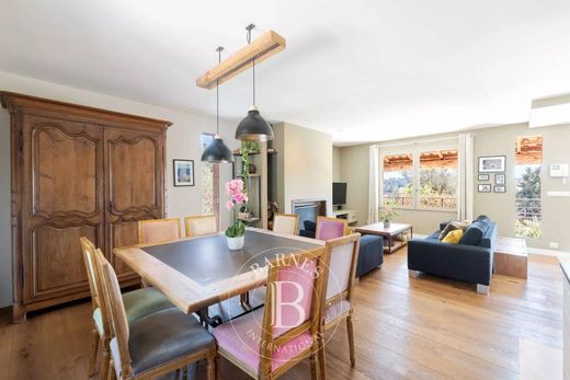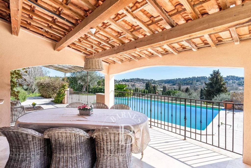 Joint sale mandate - One storey charming renovated villa totaling 152sq.m, nestled at the end of a cul-de-sac, enjoying beautiful views of the hills, 2 minutes drive from the village of Valbonne. It consists of a living/dining room with fireplace, open kitchen, 4 bedrooms, 2 bathrooms and laundry room. Garage of 25 sq.m, landscaped garden of more that 2100 sq.m with salt swimming pool and large terrace. Several parking spaces.