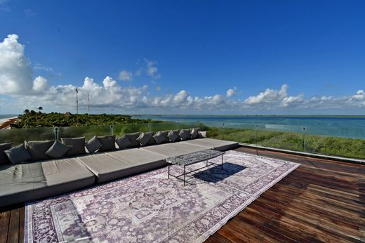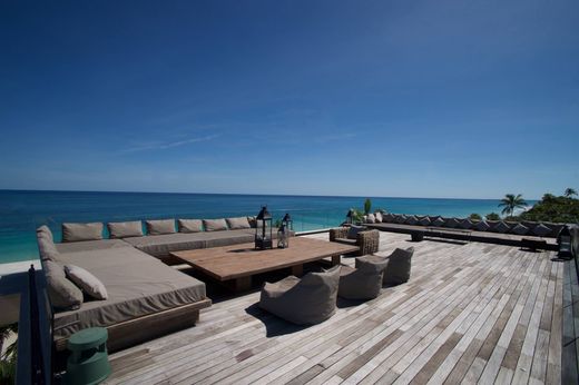 Set on 1,45 acre of land with 328 linear feet of pristine beachfront, and offering 9,633.26 square feet of construction, t he property features four guest suites and a separate primary loft, along with 2 swimming pool, open-air lounge , spacious living and dining areas, a fully equipped kitchen, and expansive rooftop terraces.