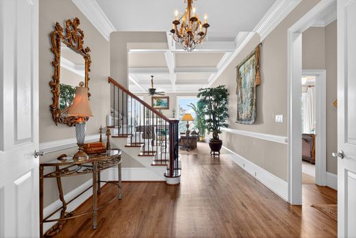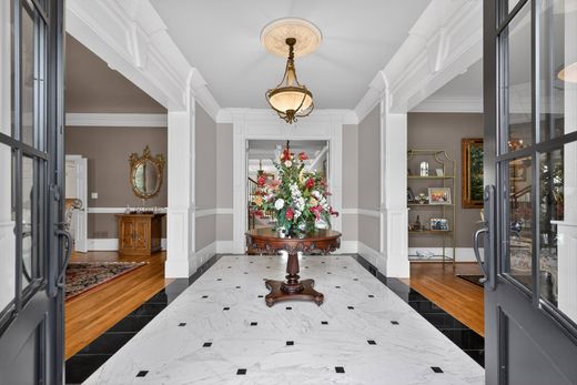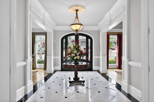 Beautifully appointed five-bedroom, five- full bath, and one-half bath estate offers an exceptional blend of elegance, comfort, and thoughtful design across all three levels. From the moment you enter, you’re welcomed by a dramatic two-story foyer with an upper-level sitting area, creating an open and inviting first impression. The main level features a spacious bedroom and bath, ideal for guests or multi-generational living. The heart of the home is the fully renovated gourmet kitchen, showcasing custom cabinetry, striking high-end granite countertops, and premium stainless steel Viking appliances, including a five-burner cooktop and double ovens. A large stainless basin sink, updated fixtures, and abundant storage make this space both beautiful and highly functional. The grand room is truly stunning, highlighted by a coffered ceiling, marble-surround fireplace, and two oversized Palladian windows that flood the space with natural light. Hardwood flooring, elegant plantation shutters, and refined finishes carry throughout much of the home. Upstairs, the luxurious owner’s suite offers a private retreat with cozy fireplace sitting area, and a Spa bath with huge walk-in closet. The terrace level is an entertainer’s dream, featuring mostly hardwood flooring, a full guest suite, additional half bath, and a custom bar/kitchen area with stainless appliances, hood vent, tile backsplash, and a distinctive onyx countertop. Enjoy movie nights in the home theater with approximately 130” screen, or relax in the expansive family room with stone fireplace, beamed ceiling, and surround sound. Step outside to your private backyard oasis, complete with a heated saltwater pool and spa with waterfall, fully fenced yard, and an impressive outdoor kitchen featuring a Big Green Egg, Alfresco grill, granite countertops, and bar seating. The Trex deck with dry-below system ensures year-round enjoyment of both upper and lower outdoor living spaces. Additional features include: New Anderson windows across the front and rear of the home, Central vacuum system (Beam Serenity), Two water heaters (2020 and 2023), Three HVAC systems, Sump pump for basement bath, Extensive plantation shutters throughout This home offers the perfect balance of luxury, functionality, and resort-style living—ideal for both everyday comfort and unforgettable entertaining.