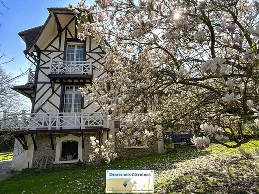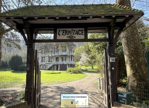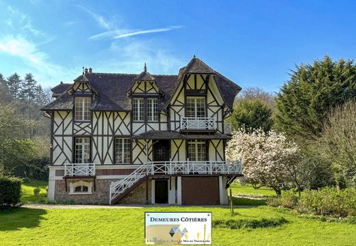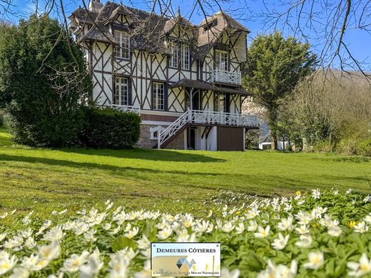 Located in the heart of the village of Yport, the villa L'Ermitage is set in a magnificent wooded park of 3794 m2. This elegant Anglo-Norman style villa is only 800 meters from the beach and the town centre which offers a bakery, butcher/delicatessen, grocery store, pharmacy, hairdresser, tobacconist as well as numerous restaurants. The villa, which offers 180 m2 of living space, is a perfect blend of classic charm and modern comfort, offering an idyllic coastal lifestyle you've always dreamed of. On the ground floor, the living spaces reflect refined taste, with exposed wooden beams adding character to the bright and airy rooms. A fireplace in one of the two living areas provides the perfect spot to relax on cooler evenings. Large windows flood the rooms with natural light. The kitchen blends rustic elegance with contemporary convenience. Terracotta floors and a vintage stove create a warm and inviting atmosphere, while white cabinetry and modern appliances ensure practicality for everyday life. The rooms are havens of tranquility, each with its own unique personality. The master bedroom, located on the ground floor, offers plenty of space to relax and recharge. It features a stylish and modern shower room with subway tiles. There is also a separate toilet. Upstairs, a very beautiful old staircase will lead you to a landing serving two large bedrooms, an office and a room with a 'lion's paw' bathtub perfect for long relaxing baths. The mix of contemporary and vintage elements throughout the house creates a timeless appeal that will never go out of style. The basement houses a laundry room. Outside, two terraces offer a view of the park and allow you to fully enjoy the natural environment. With its perfect balance of charm, comfort and location, this house in Yport is not just a property - it's an opportunity to make your coastal living dreams a reality.
