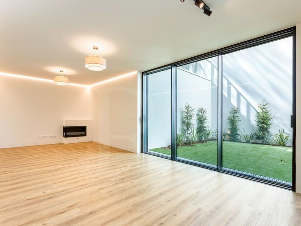 Ready to receive its identity, the flat combines a contemporary language with a welcoming atmosphere, where each space was designed to balance aesthetics and functionality. The living room, large and bright, with fireplace, becomes the natural meeting point of the house, perfect for quiet moments or to entertain. The fully equipped open-plan kitchen integrates fluidly, creating a modern and practical environment.