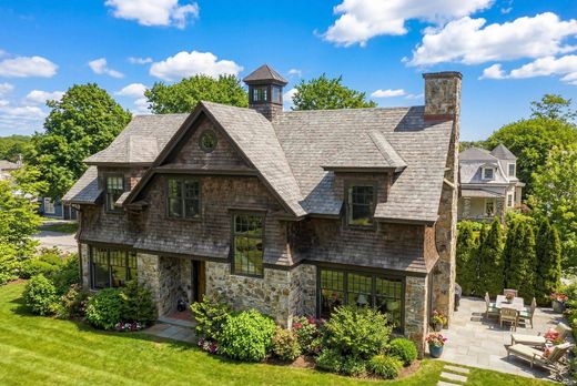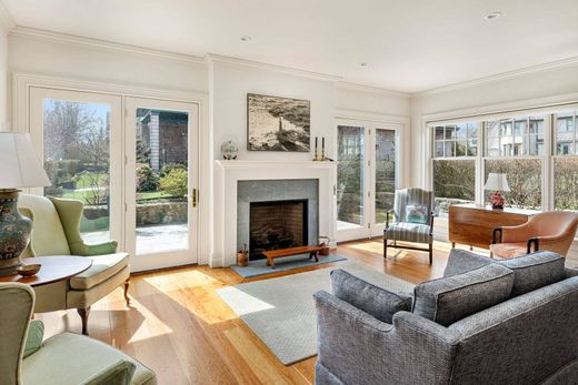 Stone and Shingle Style Carriage House built in 2017 - identified as Unit #9 at "The Carriage House" of the "Eastbourne Lodge" Condominium Association. This masterfully constructed free-standing residence is located in a most sought-after neighborhood in Newport. The interior was designed with high ceilings, oversized windows and French doors which fully capture sunlight from morning to night. The open kitchen/dining/living room with stone fireplace has French doors opening to a private Bluestone patio to the south. The cherry floors which were specially sourced in Maine and are throughout the house. The kitchen has floor to ceiling cherry cabinets and lovely green hued granite counter tops. A first-floor room has an ensuite bath and would be suitable as a bedroom, studio or office/den. The second-floor level has a bright open landing large enough for a small gym or extra office/sitting room. The south-facing primary bedroom has an ensuite bath with a stackable washer/dryer. The north-facing guest bedroom has ensuite bath as well. As part of the Eastbourne Condo Association the freestanding unit has access to the roof top deck of the original "Eastbourne Lodge" via the grand staircase or an elevator to the large common area roof-top deck with Newport views. The wonderful location is a short walk midway between Easton's Beach and Cliff Walk and Bellevue Avenue and downtown Newport.