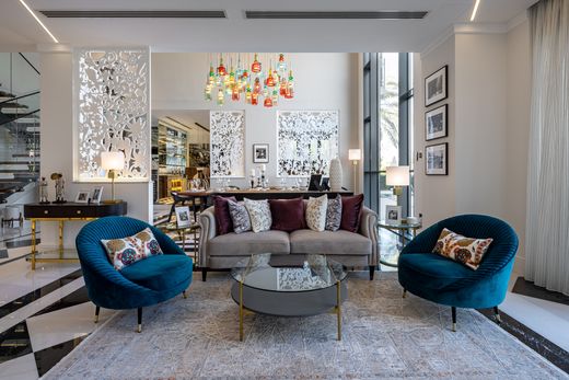 We are pleased to present this fully furnished six-bedroom villa in Jumeirah Islands with eclectic interiors and the plot area has been expanded and now measures approximately 10,000 sq. ft.